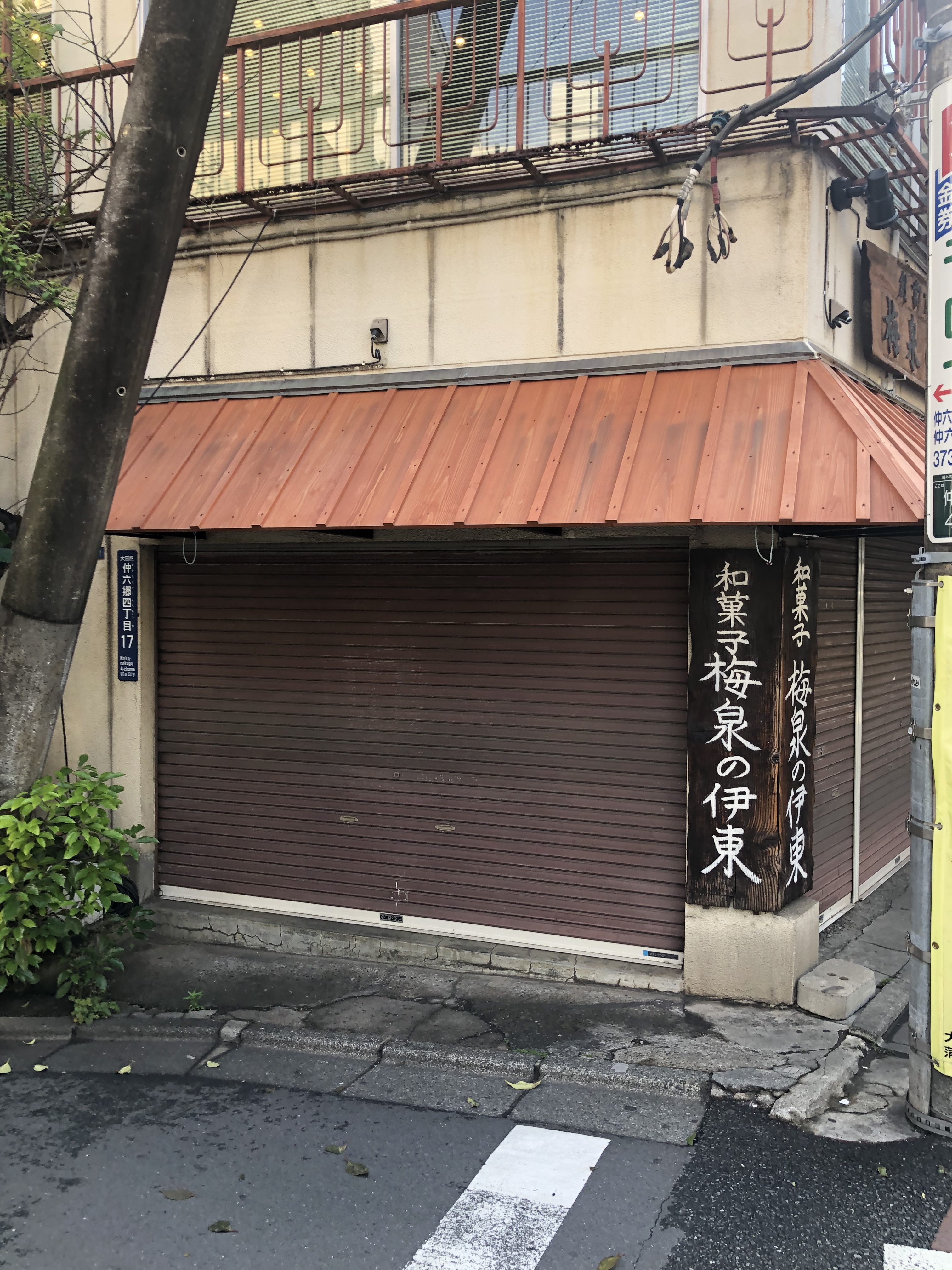 六郷土手にある 和菓子屋伊東 経年劣化が激しく腐食の進んだ屋根から