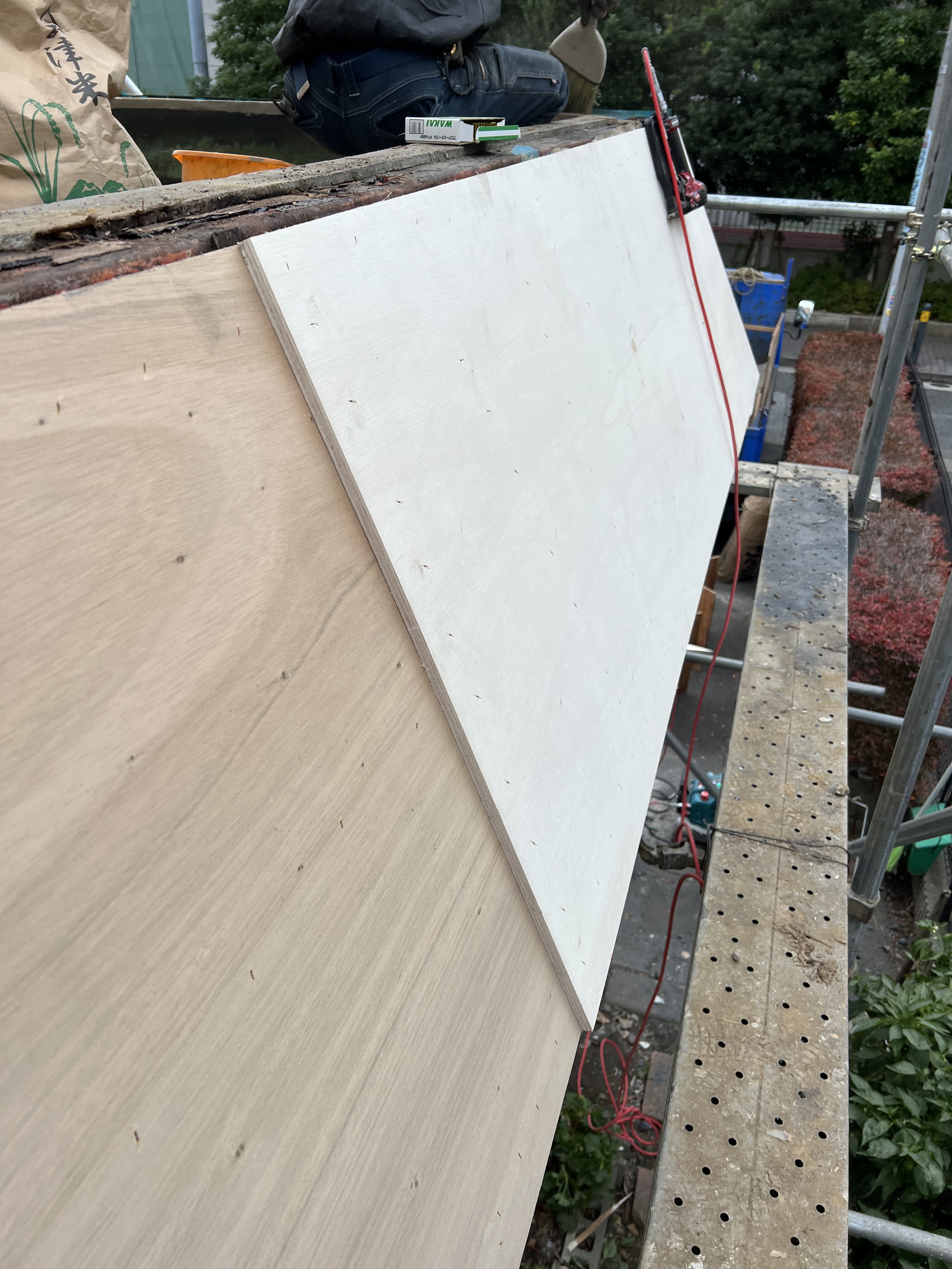 30年以上の屋根は雨漏りで瓦がずり落ちていて危険な状態で、下地からやり直しに…..